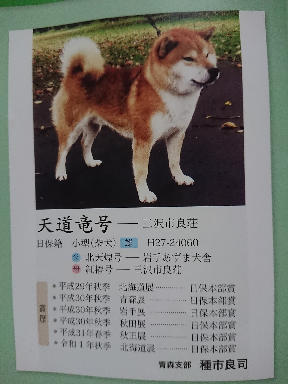 お相手は、名誉ある日保本部賞完成犬の「天道竜」号。天道竜号は昨秋の北海道展で勝って完成犬となっており、その様子を玄の村長日記でも紹介させていただきました。
